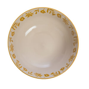 Σαλατιέρα Amadeus από πέτρινο σκεύος σε οικογενειακό μέγεθος (διάμετρος 26 εκ.). Ο κίτρινος και λευκός ανθισμένος σχεδιασμός της προσθέτει μια κομψή διακοσμητική πινελιά στο τραπέζι. Στιβαρή και εύκολη στη συντήρηση, ταιριάζει τέλεια σε μια σειρά από premium δοχεία τροφίμων, καλύπτοντας τις ανάγκες των πελατών που αναζητούν ποιότητα και αισθητική.