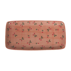 Ορθογώνιο πιάτο από πέτρα με φινίρισμα «γκριότ», σχεδιασμένο για την παρουσίαση τάρτας, κέικ και ορεκτικών. Συμπαγές μέγεθος (15 x 30 x 3 εκ.) και ελεγχόμενο βάρος (420 γρ.): εύκολο στην αποθήκευση και τη μεταφορά. Η ανθεκτική κεραμική του εξασφαλίζει καλή απόδοση για καθημερινή χρήση και ελκυστική φωτογραφική παρουσία για καταλόγους. Ιδανικό για να εμπλουτίσει μια πολύχρωμη σειρά θεματικής σερβίτσιας — επιπλέον αξία: εκτυπωμένο μοτίβο κερασιού που προσθέτει πρωτοτυπία και χαρακτήρα στη συλλογή.