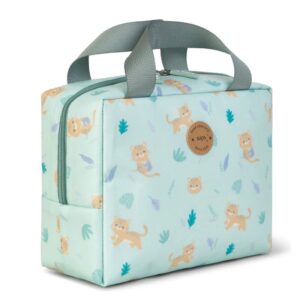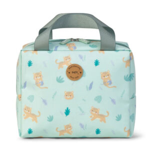 Ισοθερμική τσάντα φαγητού από την εταιρεία Saro σε βεραμάν χρώμα με ζωάκια στο σχέδιο. Είναι κατασκευασμένη από 100% polyester rPET. Είναι αδιάβροχη. Διαθέτει μία μεγάλη θήκη που κλείνει με φερμουάρ. Διατηρεί τα φαγητά κρύα για 3-4 ώρες και ζεστά για 5-6 ώρες. Διαθέτει εξωτερική τσέπη ιδανική για να αποθηκεύετε μαχαιροπίρουνα ή χαρτοπετσέτες. Είναι πολύ ελαφριά και άνετη στη μεταφορά χάρη στις λαβές που έχει. Ιδανική τσάντα για να μεταφέρετε το φαγητό του μικρού σας στο πάρκο ή και στο σχολείο.