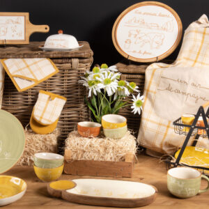 Κουτάλες ζευγάρι “ROMY” , οι οποίες αποτελούνται δύο τεμάχια, τριάντα εκατοστών , από ξύλο ακακίας. Αρκετά ελαφριές και εύχρηστες, ώστε να τις χρησιμοποιείτε στη καθημερινότητα σας με ευκολία. Με σχέδιο “ROMY” σε αποχρώσεις εκρού και κίτρινου ,περιλαμβάνοντας περίγραμμα φυλλωμάτων και βούλες σε “minimal” εκδοχή . .