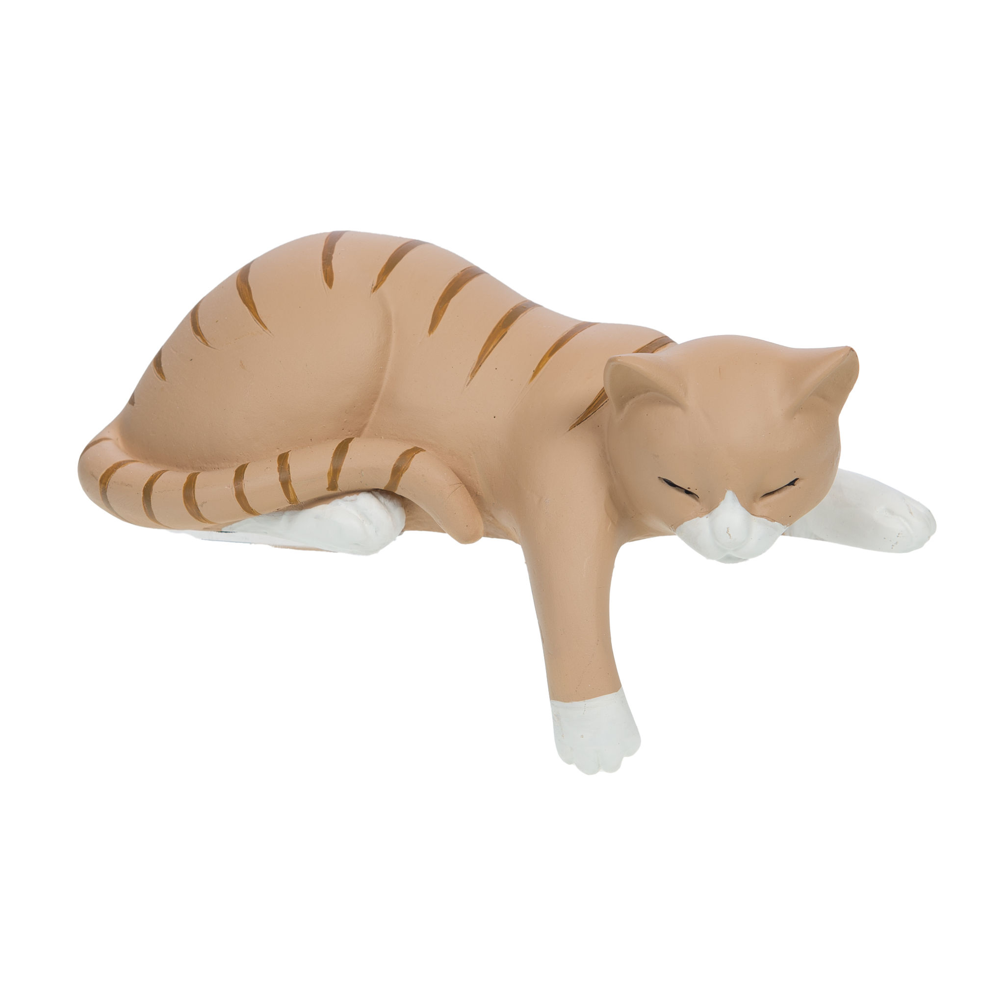 Διακοσμητικό φιγούρα ρητίνης που απεικονίζει μια γάτα σε ύπτια θέση με κρεμασμένο πόδι. Συμπαγές (15x8x9 εκ.) και ελαφρύ (320 γρ.), χωράει εύκολα σε μια ποικιλία κλασικών διακοσμητικών αντικειμένων.