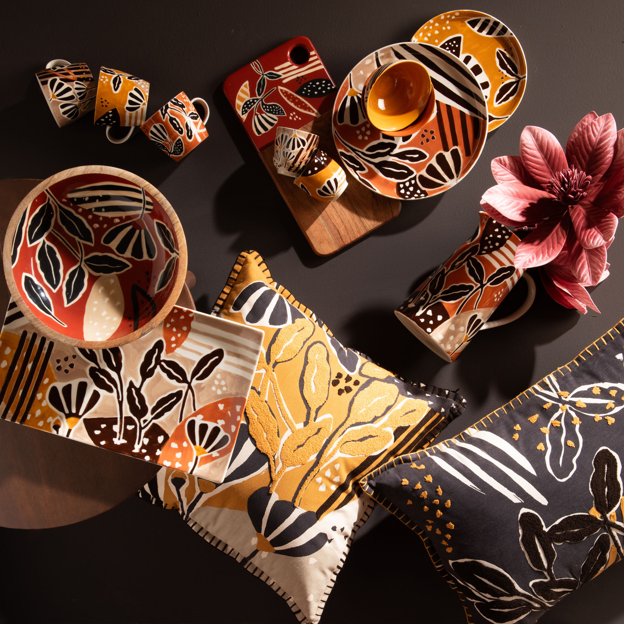 Πιάτο από κεραμικό λάκκο της Amadeus, με διάμετρο 26 εκ. και ύψος 3 εκ. Ο πολύχρωμος γραφιστικός του σχεδιασμός, που συνδυάζει ανθικό μοτίβο και ρίγες, προσθέτει καλλιτεχνική πινελιά σε κάθε συλλογή σερβιρίσματος.