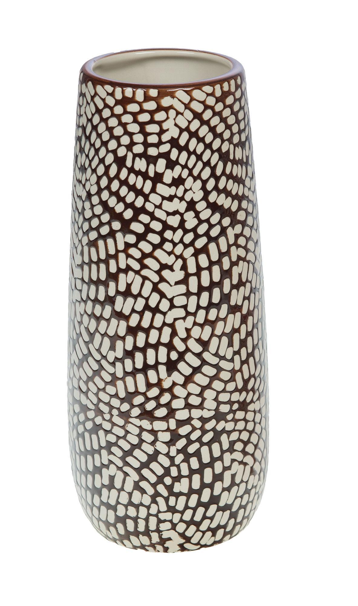 Διακοσμητικό κεραμικό βάζο, ύψος 25 εκ., προσφέρεται ως σετ (2 τεμ.) σε κόκκινο και καφέ. Γυαλιστερή επιφάνεια με λευκό μωσαϊκό σχέδιο, φινίρισμα γυαλιστερό, μεσαίο μέγεθος ιδανικό για εκθέσεις στο κατάστημα. Είδος επώνυμης μάρκας Amadeus, βάρος 1,25 κιλά — εύκολο στην αποθήκευση και την αποστολή. Πρόσθετη αξία: ένα γραφιστικό κομμάτι σχεδιασμένο να εμπλουτίσει μια σύγχρονη, εποχιακή διακοσμητική σειρά· πωλείται μεμονωμένα εντός του σετ.