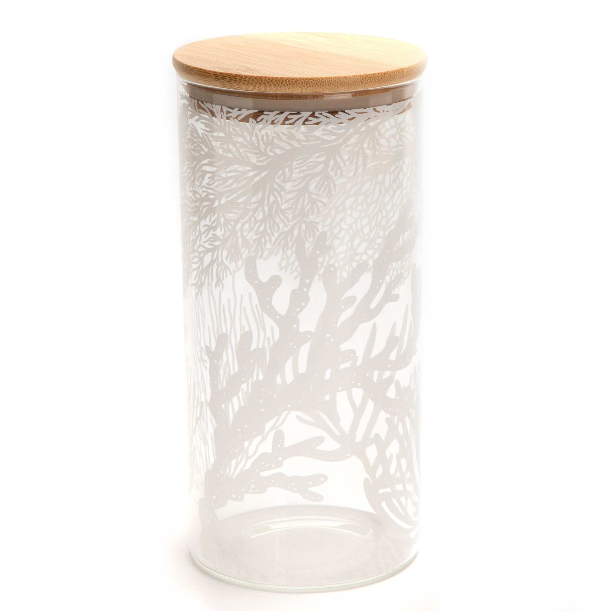 Διαφανές βάζο αποθήκευσης από βορροπυριτικό γυαλί, ύψους 16,8 εκ., με καπάκι από φυσικό ξύλο. Ιδανικό για αποθήκευση τροφίμων, συνδυάζει αντοχή και αισθητική χάρη στη λεπτή κοραλλένια διακόσμησή του. Πρόκειται για ένα βιώσιμο και εύκολο στον καθαρισμό προϊόν, ιδανικό για να αναβαθμίσει μια σειρά πρακτικών και διακοσμητικών δοχείων, απευθυνόμενο σε πελάτες που αναζητούν ποιότητα και σχεδιασμό.1