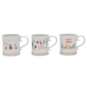 ΛΕΥΚΗ ΚΕΡΑΜΙΚΗ ΚΟΥΠΑ ΜΕ ΧΡΙΣΤΟΥΓΕΝΝΙΑΤΙΚΕΣ ΦΙΓΟΥΡΕΣ 3 ΣΧΕΔΙΑ 400ml
