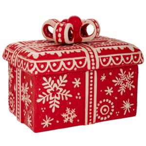 ΚΟΚΚΙΝΗ ΛΕΥΚΗ ΚΕΡΑΜΙΚΗ ΜΠΙΣΚΟΤΙΕΡΑ ΣΕ ΣΧΗΜΑ ΔΩΡΟΥ 21Χ15Χ18ΕΚ