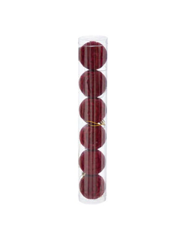 Μπάλες μπορντώ βελόυδο πλαστ. Σετ6τμχ Φ6cm