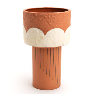 Σύγχρονο και κομψό βάζο από πέτρα, τέλειο για να αναδείξει μια μοντέρνα γκάμα εσωτερικής διακόσμησης. Το ακατέργαστο φινίρισμα και τα διχρωματικά γεωμετρικά σχέδια προσθέτουν μια αίσθηση φυσικής κομψότητας. Οι συμπαγείς διαστάσεις του (Υ 19 εκ.) το καθιστούν εύκολο στην προβολή στα καταστήματα. Ένα ανθεκτικό και αισθητικά όμορφο προϊόν, ιδανικό για την προσέλκυση πελατών που αναζητούν αυθεντικότητα και μοντέρνο στυλ.